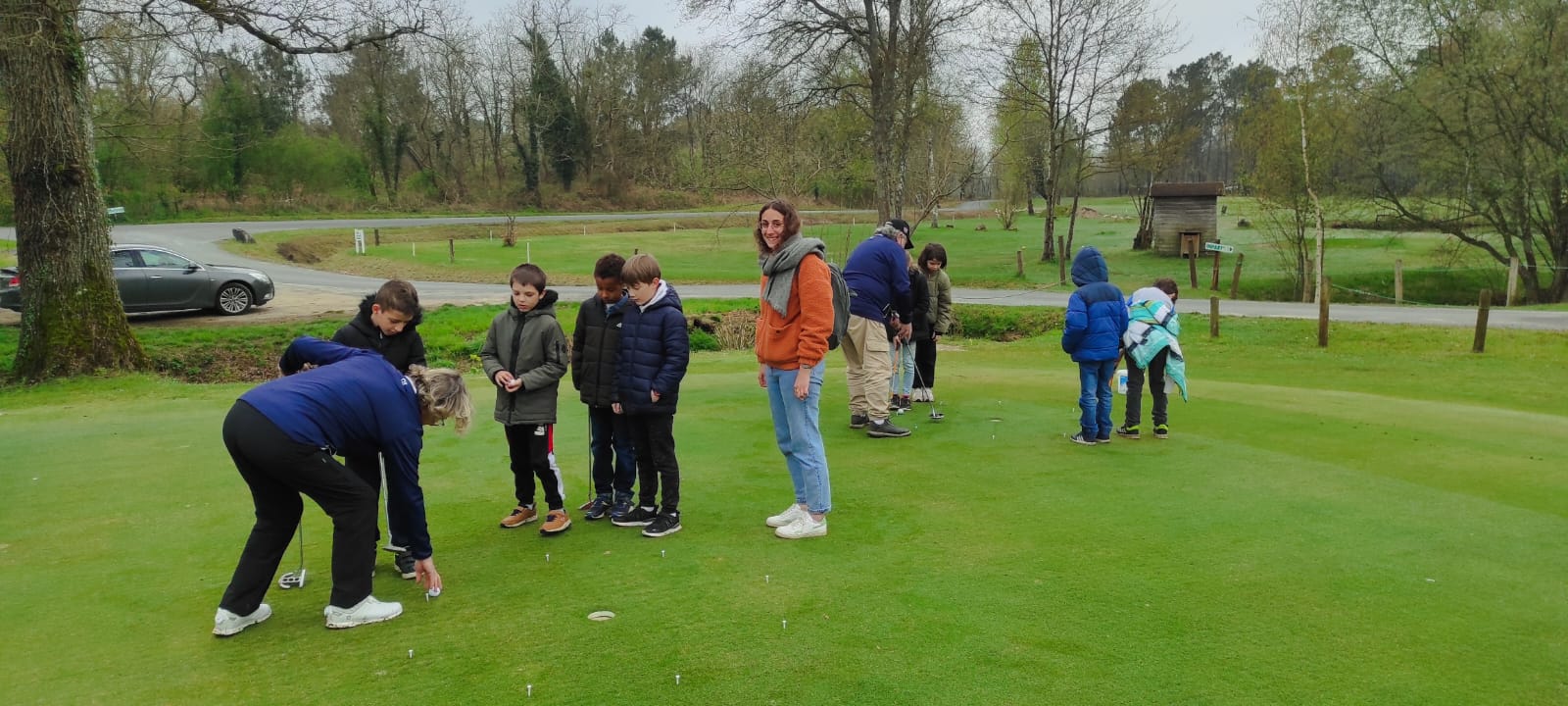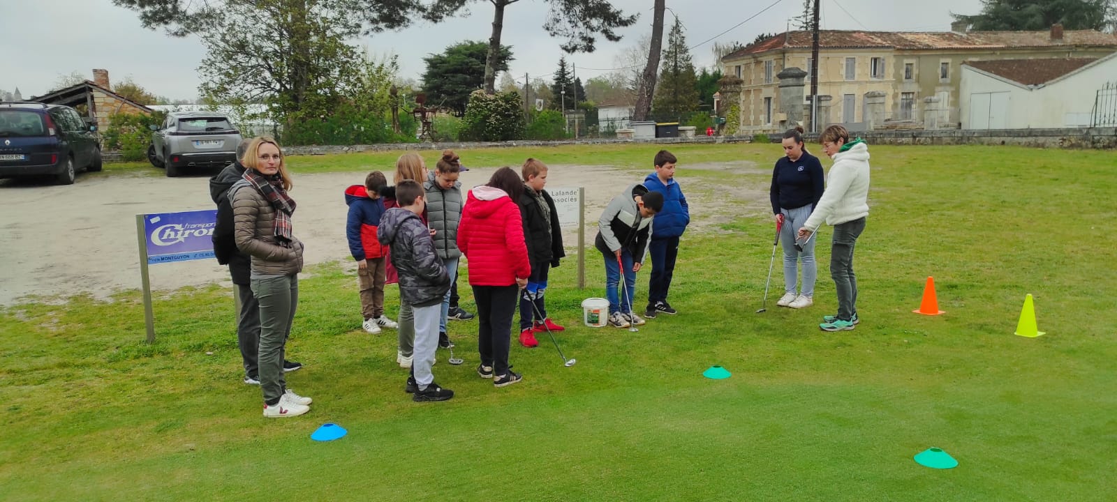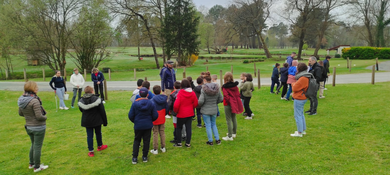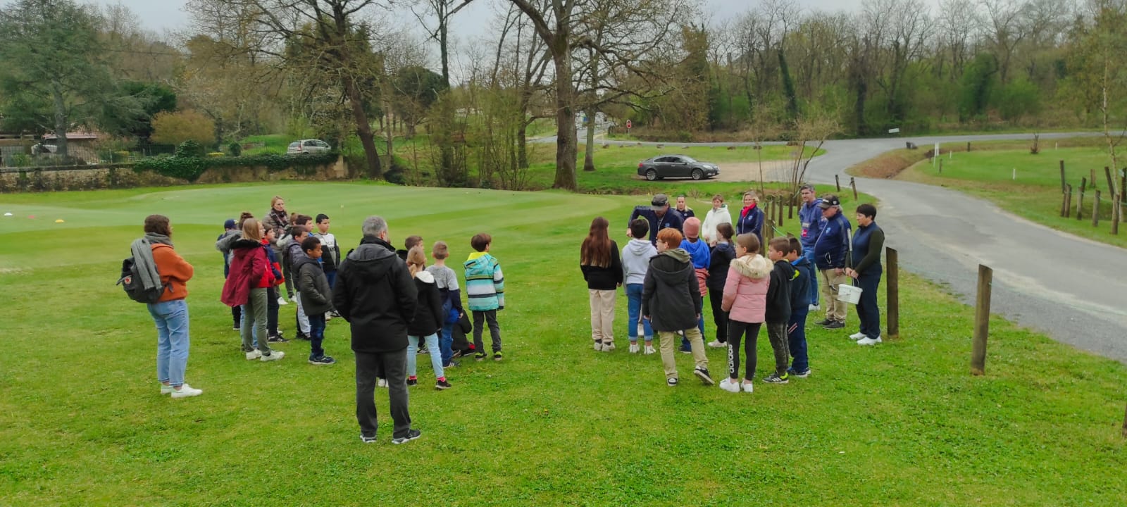 Les enfants du primaire (cm1 et cm2) pour leur 1ere initiation au golf ce vendredi 7 avril 2023 avec les bénévoles de l’association. Comme chaque année, il y aura 3 initiations au total encadrées par le pro Samuel Mallet assisté des bénévoles du club, sous l’œil bienveillant de leurs enseignants.
